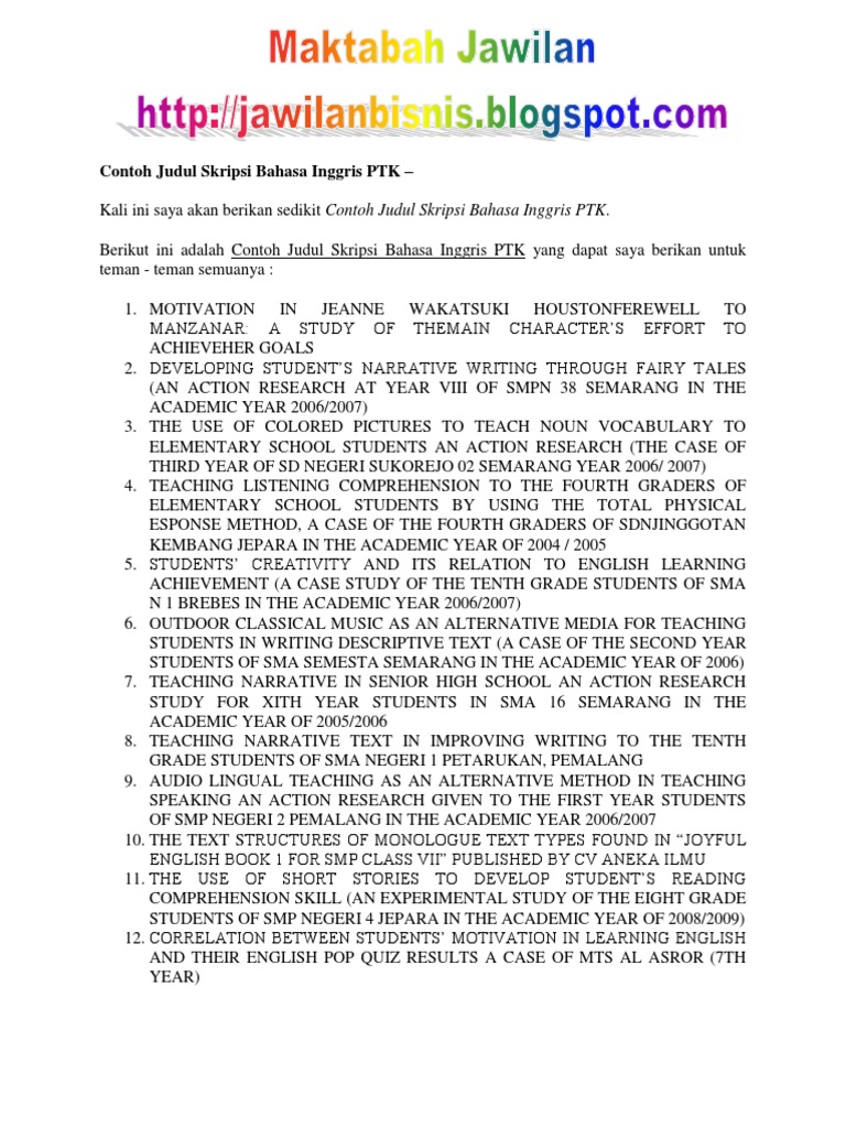 Contoh Judul Skripsi Pendidikan Bahasa Inggris Tentang ... from lh6.googleusercontent.com Maybe you would like to learn more about one of these? Check spelling or type a new query. We did not find results for: Contoh skripsi bahasa inggris unwagati.